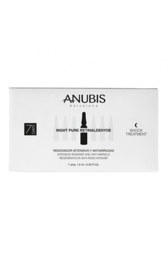 Las ampollas 7 Days Night Pure Retinaldehyde de Anubismed ofrecen un tratamiento cosmecéutico nocturno de acción intensiva con retinaldehído puro, un retinoide de nueva generación altamente eficaz, mejor tolerado que el retinol tradicional y con efectos visibles más rápidos.