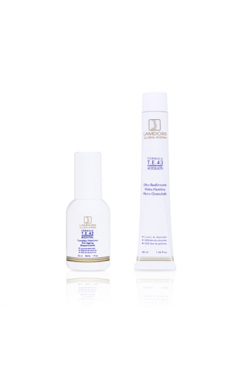 La fórmula Ultra-reafirmante Hidronutritivo T.E.43 MICROELASTÍN es una crema micro-granulada de penetración ultra reafirmante, estimulante circulatoria, hidronutritiva y regeneradora con un alto concentrado en principio activo al 16%. Es una crema que aporta las sustancias esenciales en la piel para su reparación progresiva.