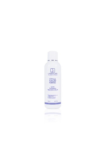 La Fórmula X.A.20 PURIFIAC de Lamdors es una loción limpiadora profunda que elimina impurezas, controla el exceso de sebo y equilibra el pH de la piel.
